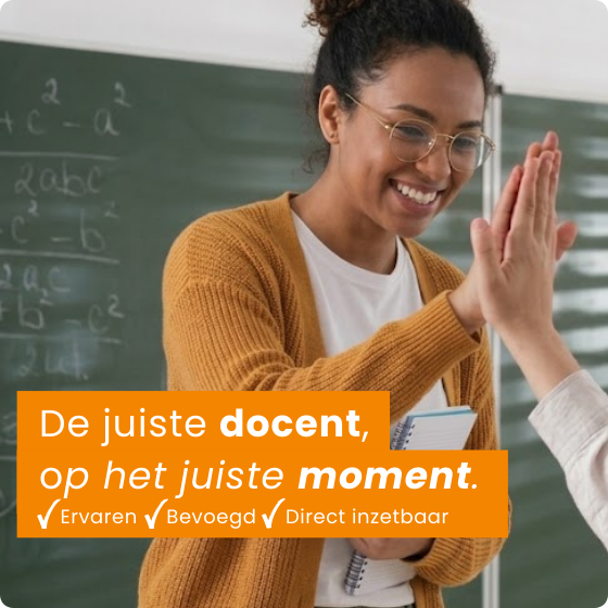 Direct inzetbare docenten bij uitval of piekdrukte. Zo blijven lessen doorgaan, ook in schaarse vakken.